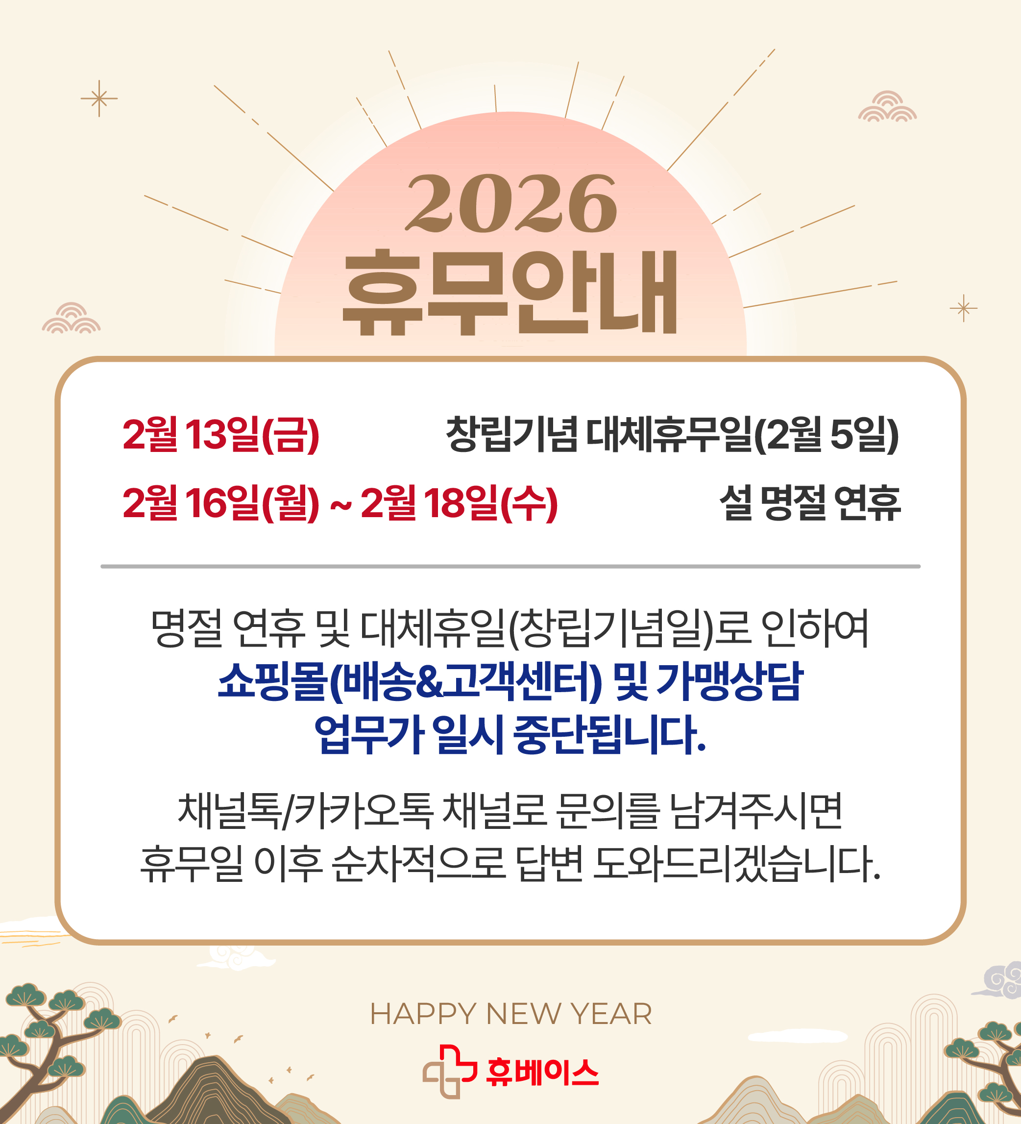 전체보기- 12월 휴베이스본사 휴무안내 2026-02-09